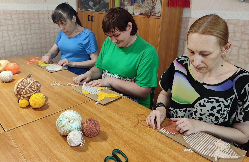 Відвідувачі швейно-ткацької майстерні виготовили різноманітних рибок контурним ткацтвом технікою ручного перебору.