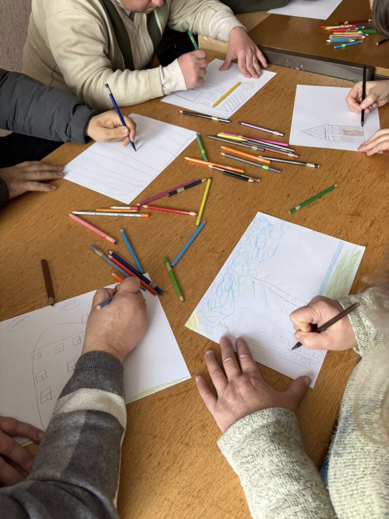 Практичним психологом було проведено арттерапевтичне заняття з відвідувачами відділення на тему безпеки та комфорту – “Мій дім – моя фортеця”. Кожен учасник намалював свій власний, безпечний простір. Разом із цим, кожен зобразив того, хто є частиною їхнього комфорту: своїх близьких та домашніх тварин.